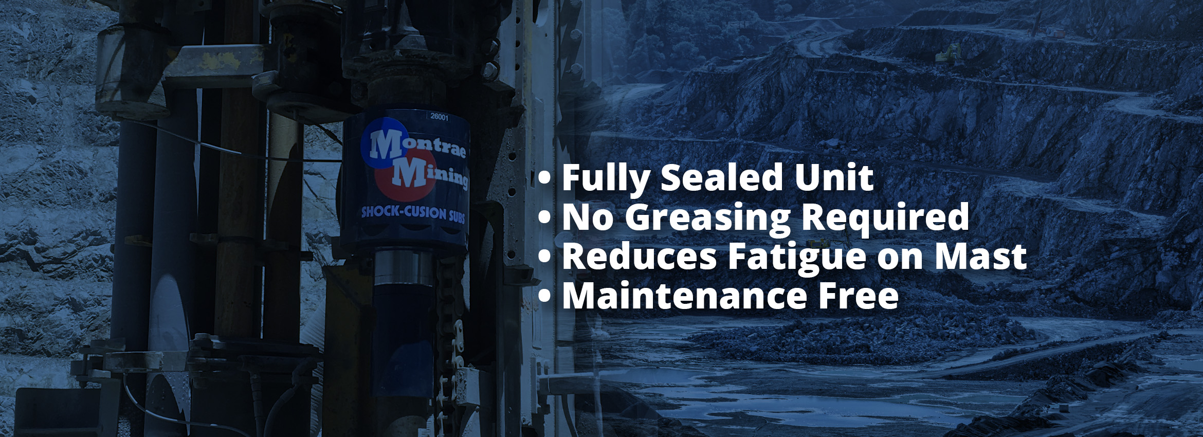 Montrae Mining Shock-Cusion Subs are used in angle and vertical drilling operations for reducing vibration and wear in rotary heads and drilling rigs.